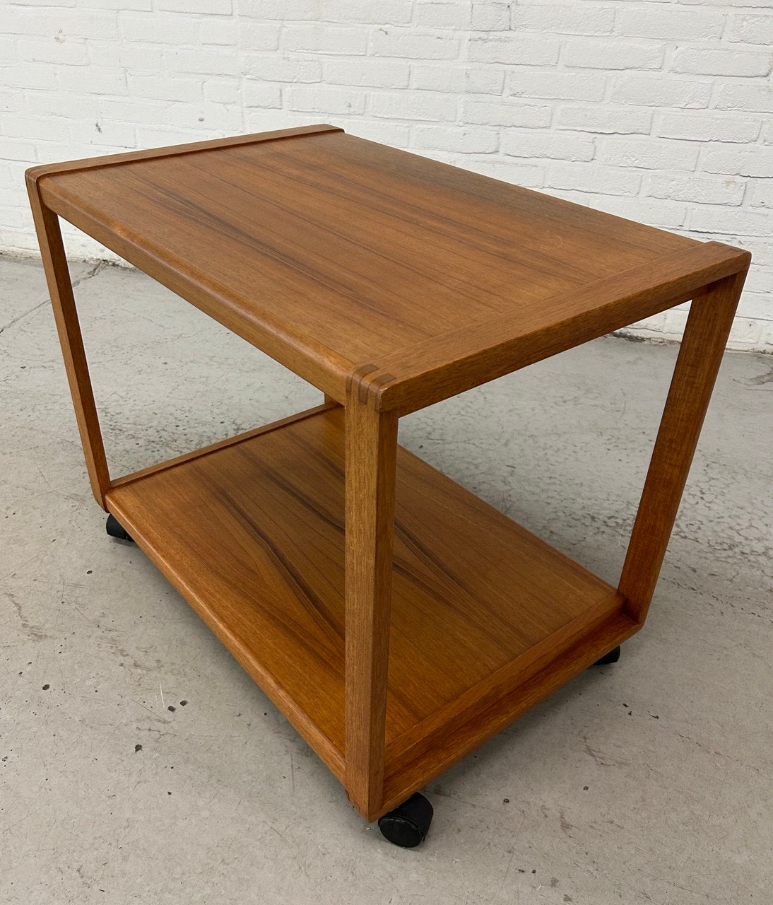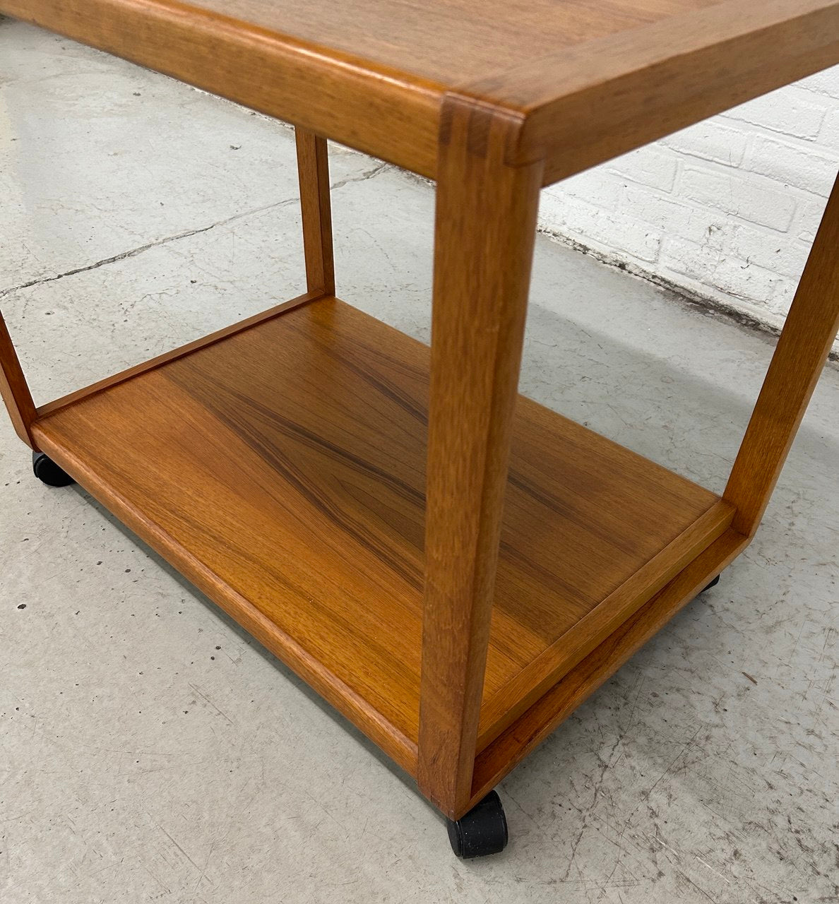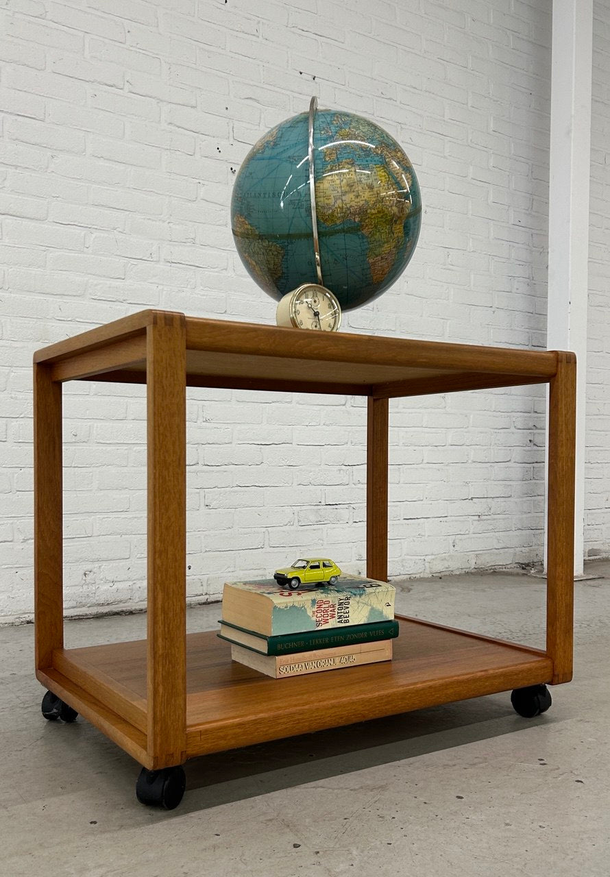 Vintage serveerwagen Deens design. Roltafel teak op wieltjes, Scandinavische stijl.