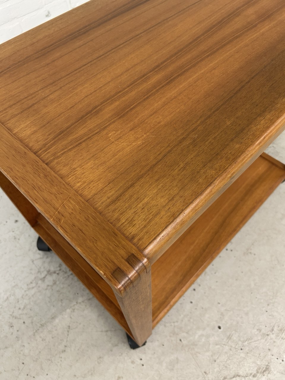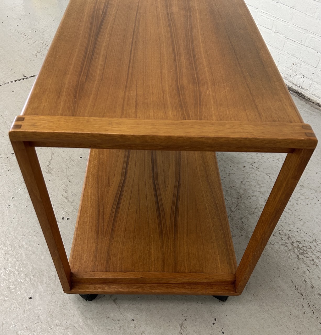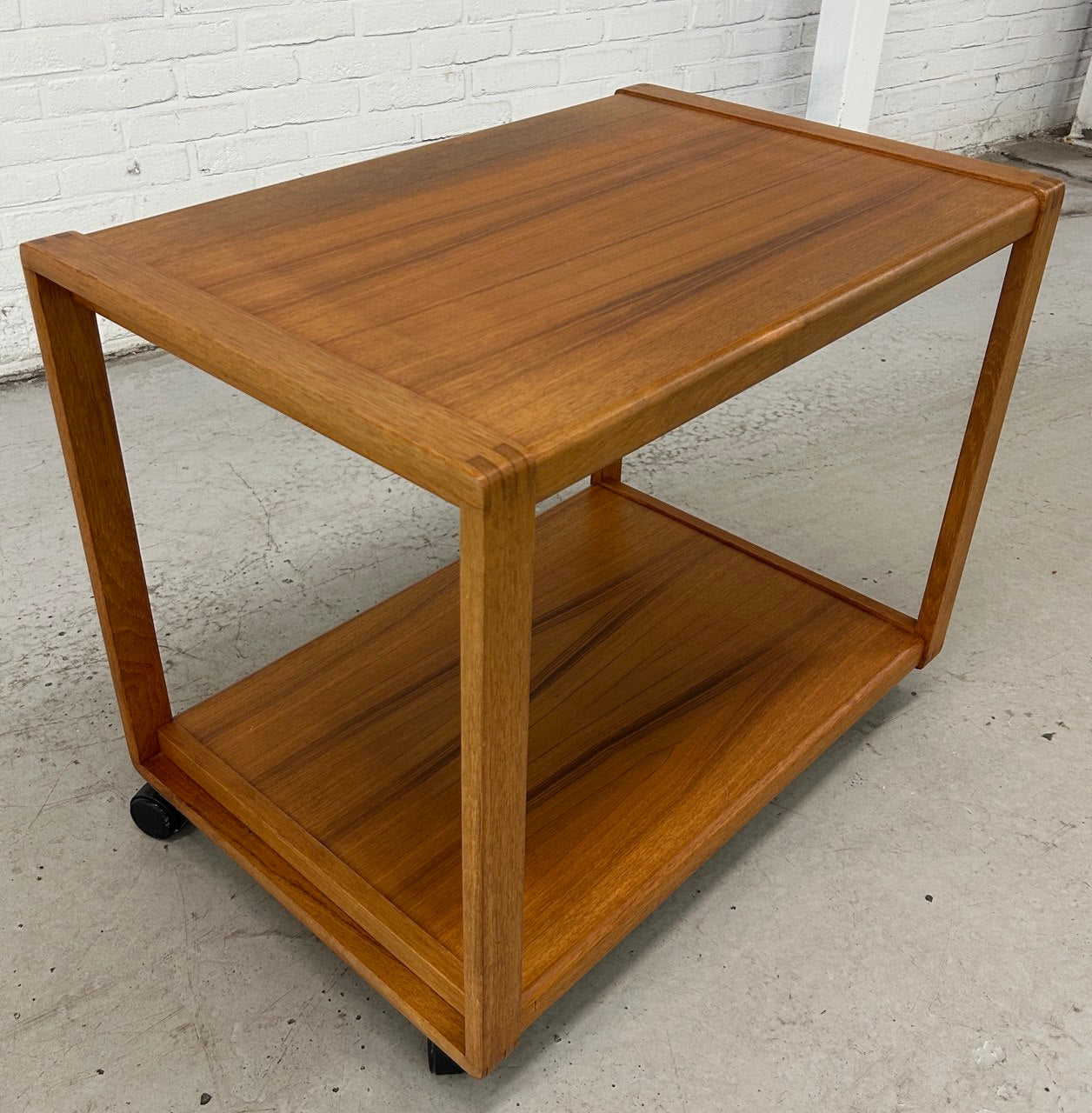 Vintage serveerwagen Deens design. Roltafel teak op wieltjes, Scandinavische stijl.
