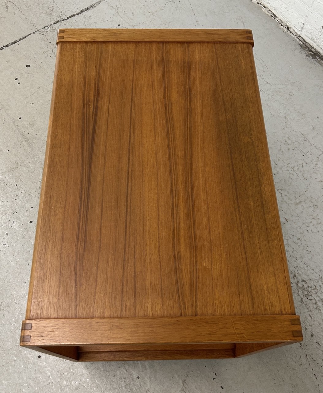 Voorzien van 2 plateaus van ruim formaat zodat er altijd ruimte is voor mooie spullen. Uniek zijn de verbindingen in het hout, welke op de hoeken zichtbaar zijn. Normale sporen van gebruik door de jaren heen (zie foto’s). Het betreft tweedehands goederen welke voor verkoop geïnspecteerd kunnen worden.