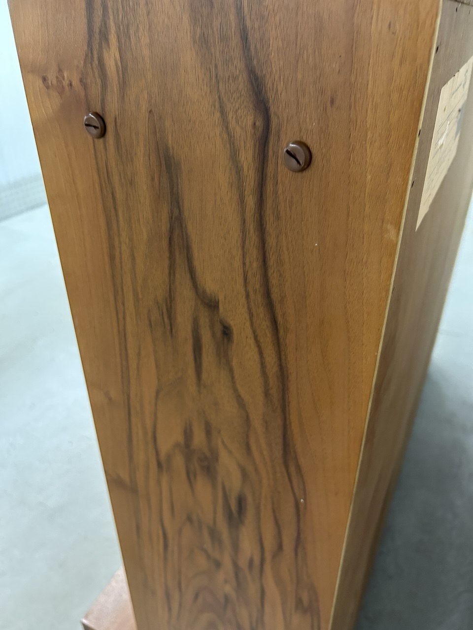 Vintage teakfineer modulair wandmeubel - Fuchs-Möbel. De kast bestaat uit 6 modules die in verschillende opstellingen neergezet kunnen worden. Een tof retro meubel met enorm veel opbergruimte. Deze wandkast heeft normale sporen van gebruik passend bij de leeftijd. Alle deurtjes openen en sluiten, echter 1 slot zit vast en bij 1 deurtje is aan de binnenzijde het klemmetje stuk (zie laatste foto’s). Het betreft tweedehands goederen welke voor verkoop geïnspecteerd kunnen worden.