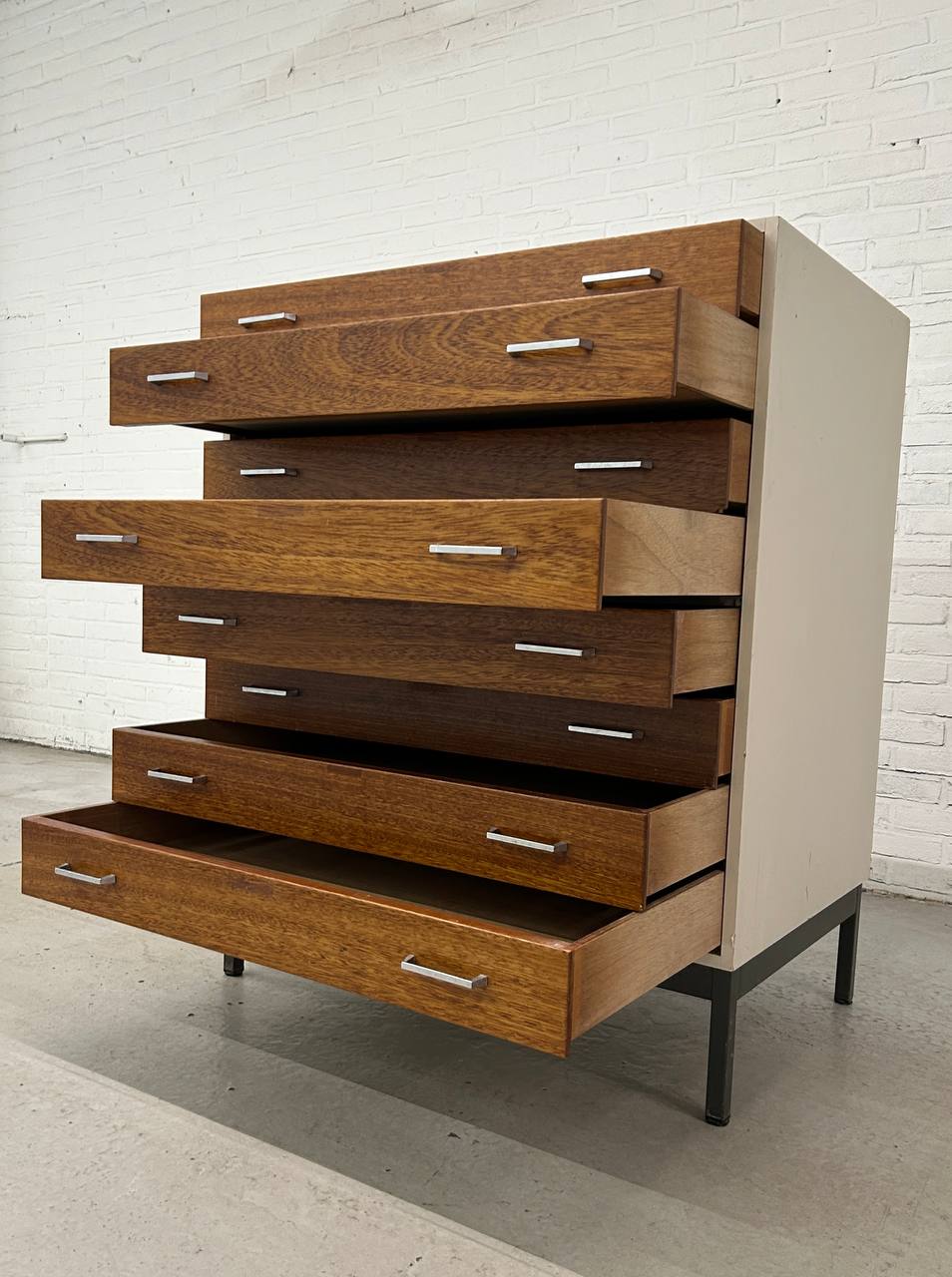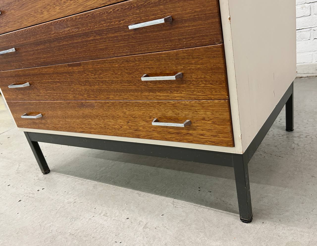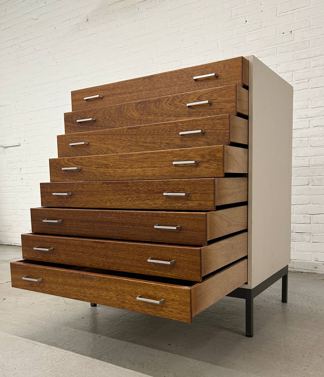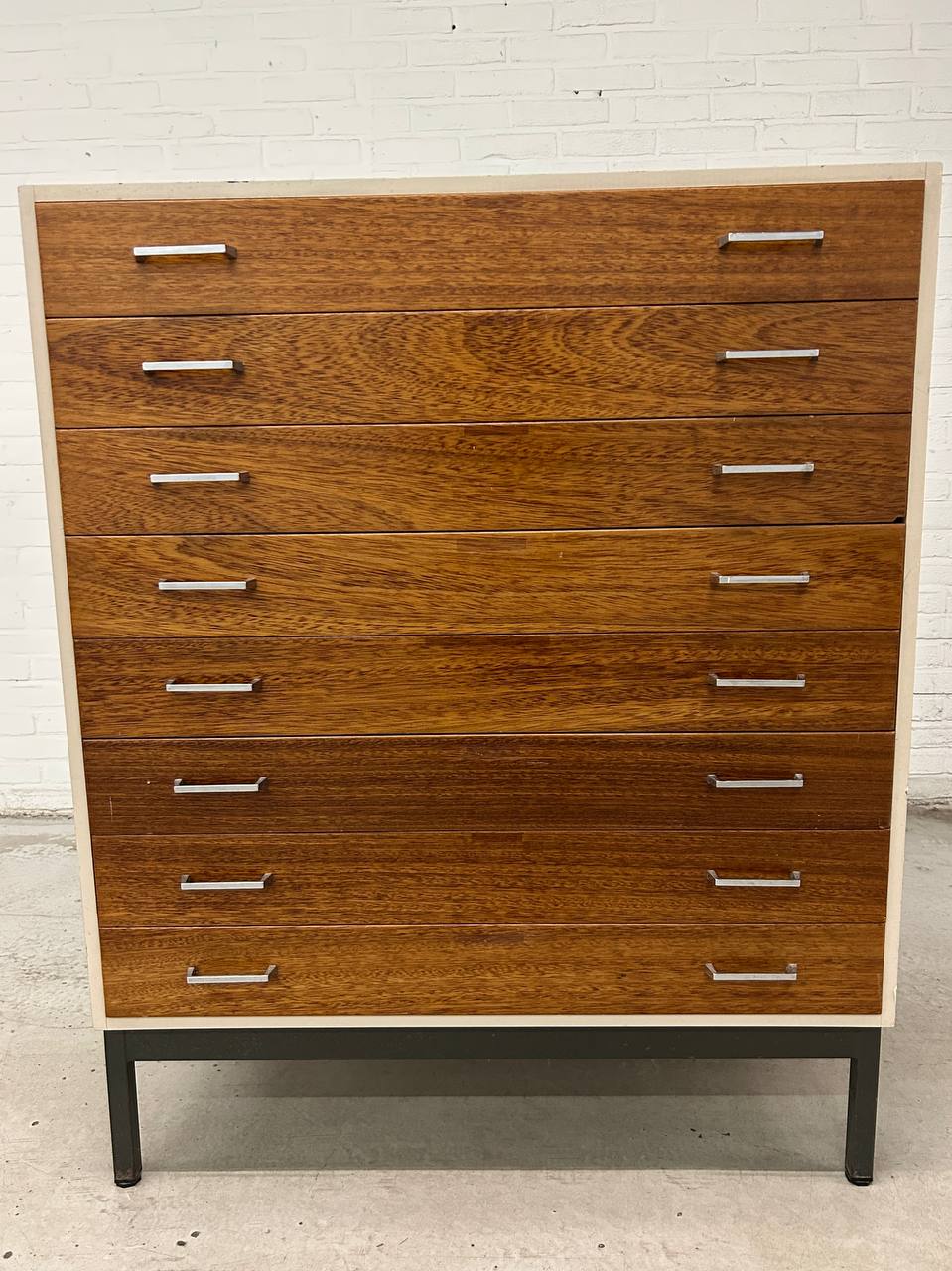 Originele vintage papierkast /ladekast afkomstig uit een school. Deze unieke schoolkast is voorzien van maar liefst 8 diepe lades. Ideaal om je papierwerk in op te bergen. Ook bruikbaar als knutselkast of archiefkast. Deze retro industriële kast komt uit een voormalige basisschool waarbij hij gebruikt werd als tekenladenkast. Gezien de leeftijd in goede vintage staat. Het betreft tweedehands goederen welke voor verkoop geïnspecteerd kunnen worden.